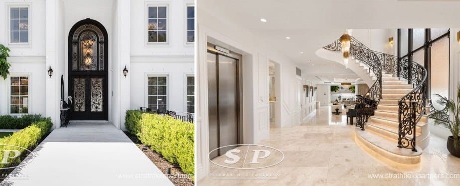 A brand new tri-level neoclassical home on a 696sqm block in Strathfield. The double-height entry features a marble staircase and statement chandeliers, the kitchen has a marble island with Miele appliances plus a full butler's pantry, and there's a covered alfresco terrace overlooking the pool. The basement has an eight-car garage, gym and entertainment room. Walking distance to St Patrick's College, Homebush Boys, Strathfield Girls, Strathfield station and Strathfield Plaza.